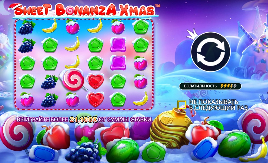 Рождественская версия легендарной Свит Бонанзы появилась в портфолио Pragmatic Play в 2019 году и сразу завоевала внимание любителей фруктовых слотов. Главная фишка — возможность сорвать выигрыш в 21 100 раз больше вашей ставки, причем неважно, крутите вы барабаны за 20 центов или за 100 долларов.